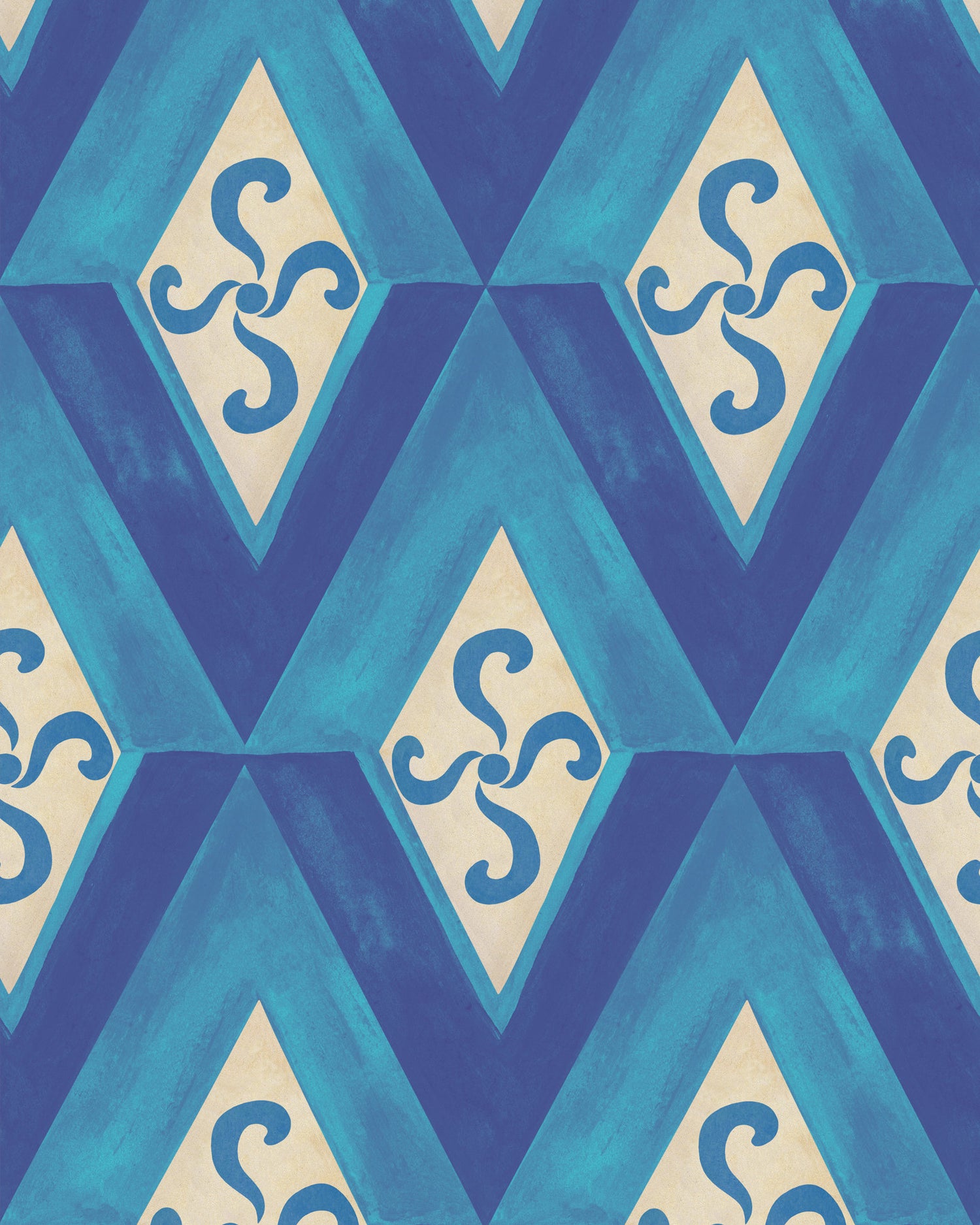 A captivating wallpaper infused with vibrant geometric patterns that are endlessly repreated, reminiscent of sparkling ocean waves. Here, relaxation is at its core, creating a cheerful ambiance that effortlessly elevates any space. Alongside these coastal-inspired motifs, ESTIVO also features an abstract pattern bringing back memories of childhood rainbows, set against a serene blue background in a trendy retro style. This fusion of elements adds an extra layer of whimsy and nostalgia, enhancing the allure of your interiors with dynamic energy and timeless appeal. Available in five hues that represent the sunniest months of the year, including Maggio, Giugno, Luglio, Agosto, and Settembre, ESTIVO offers such great versatility.