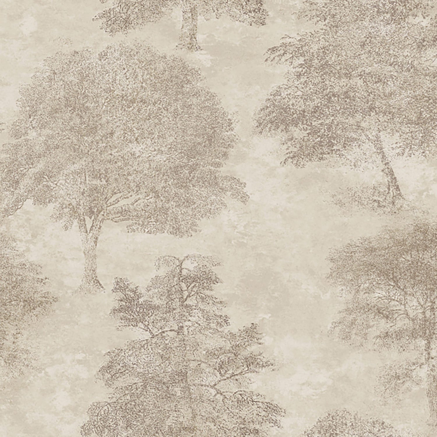 This textured vinyl wallpaper features a tree motif pattern in a warm brown on a lighter brown background.