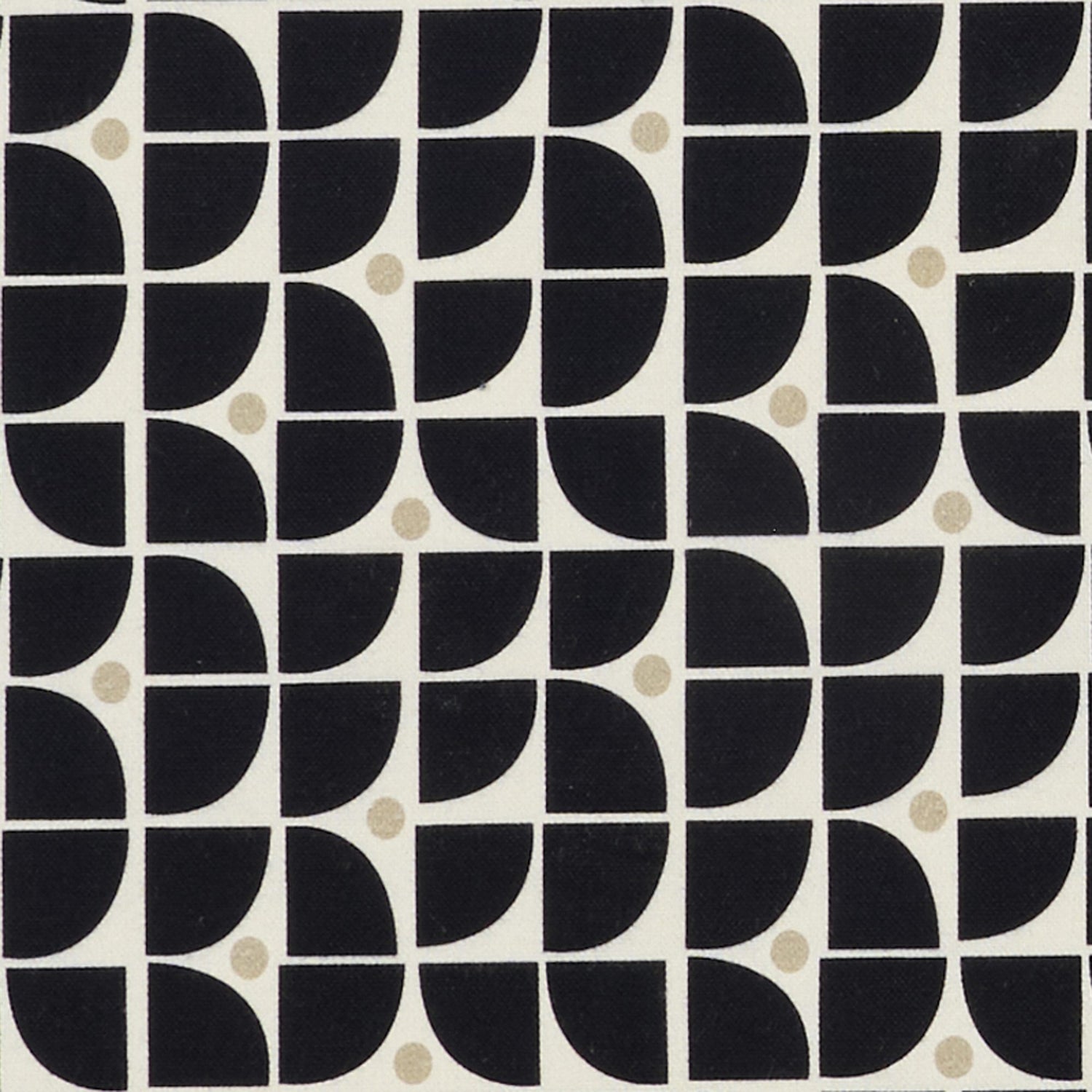 A bold, retro-inspired print in black and white with golden beige dots.
