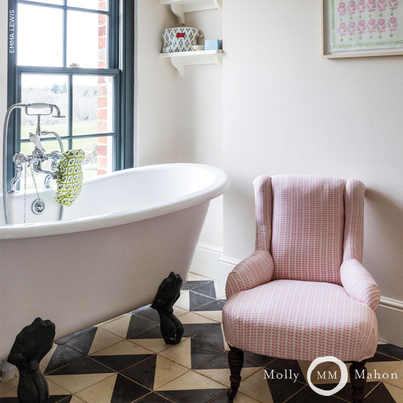 Schumacher Bindi Hand Block Print Pink Fabric - Yard is backordered and will ship as soon as it is back in stock.