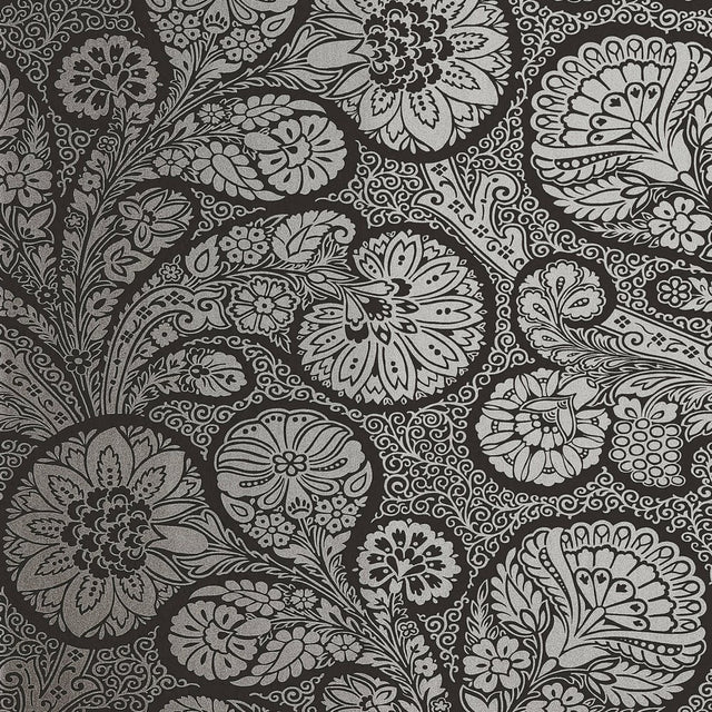 Thibaut T13063 TROUBADOUR Metallic Silver on Black Wallpaper