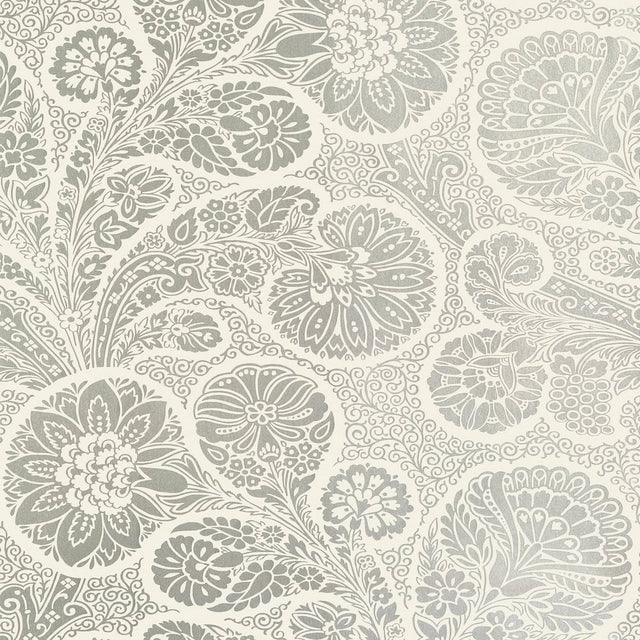 Thibaut T13067 TROUBADOUR Metallic Silver on Cream Wallpaper