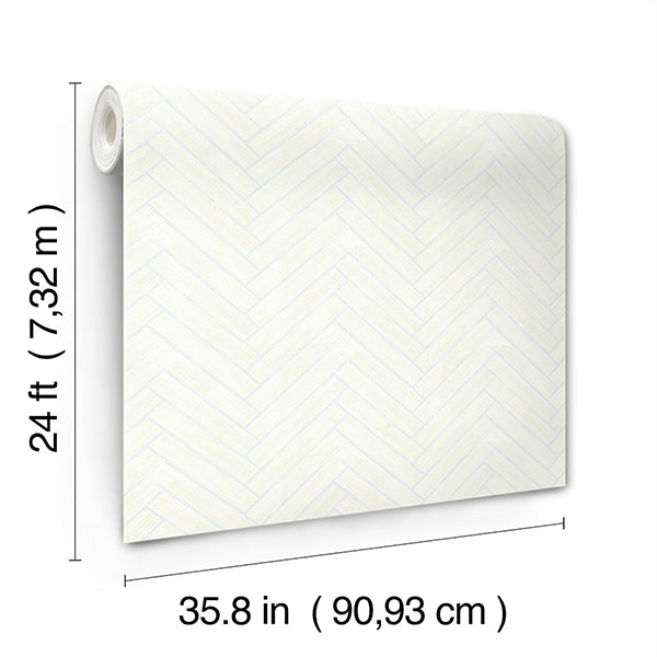 The classic suiting weave of Herringbone Wood Veneer creates a zig-zag brick effect in authentic wood, backed by burnished metallic foil. Featured here in apple blossom white and silver metallic. This Herringbone Wood Veneer Wallpaper measures approximately 35.8 inches wide by 24 feet long, measuring approximately 71.6 square feet per roll. A source guide, streamlined by the framework of color, provides a designer approach to distinctive specialties, naturals, grasses, woods, and luxury textiles. The affluent curation of exclusive designs highlights the best in handcrafting with organic materials.