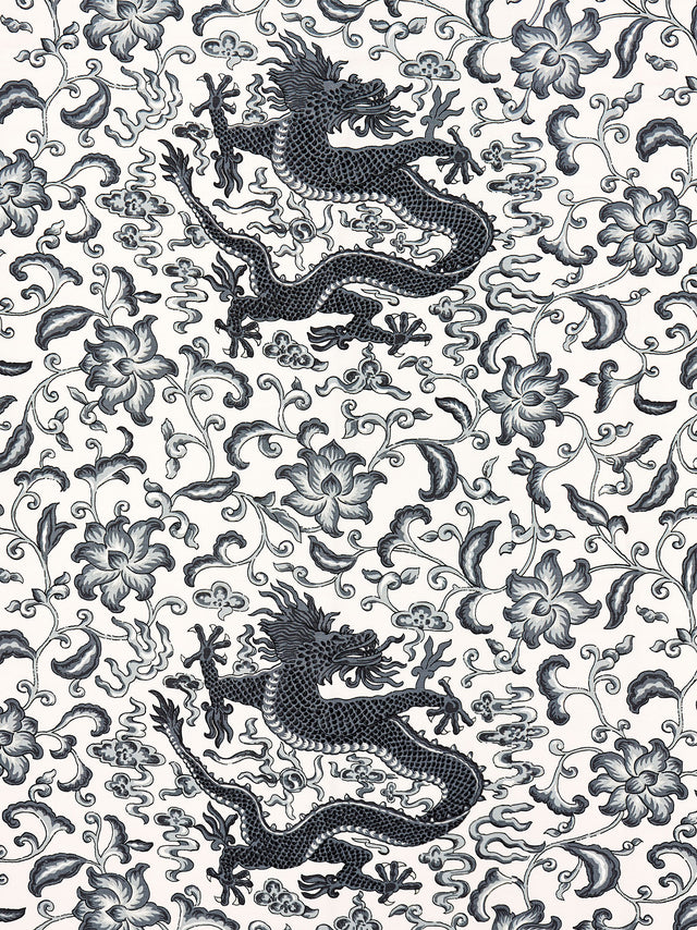 Scalamandre SC 000516558 CHARCOAL CHI'EN DRAGON LINEN PRINT Fabric - Yard is backordered and will ship as soon as it is back in stock.