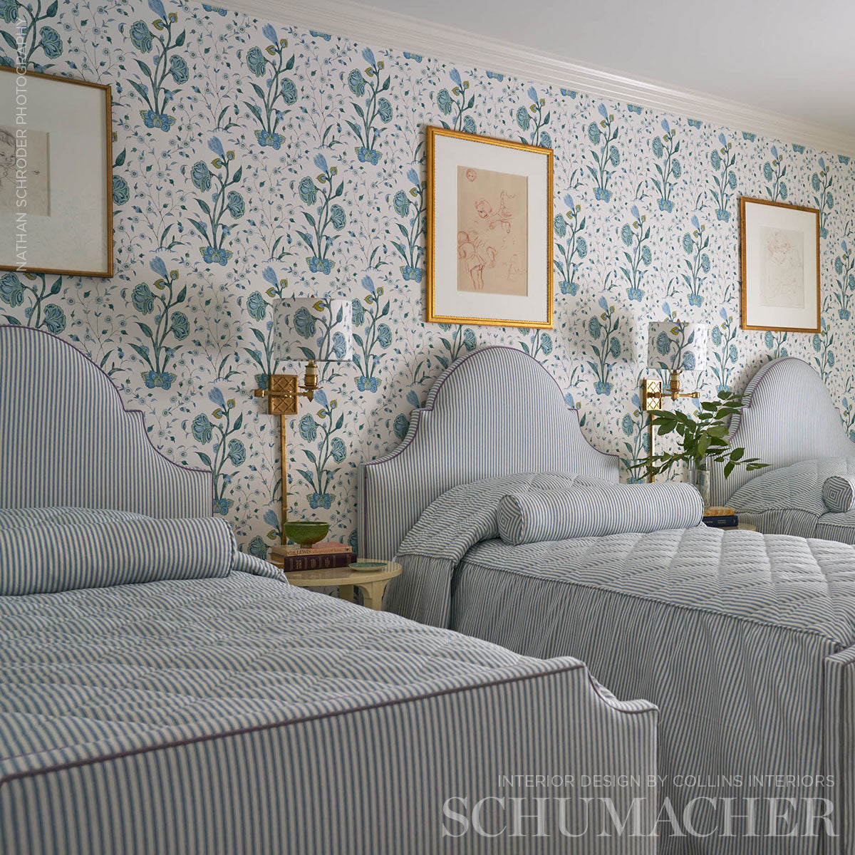 Schumacher 5009952 Khilana Floral Peacock Wallpaper