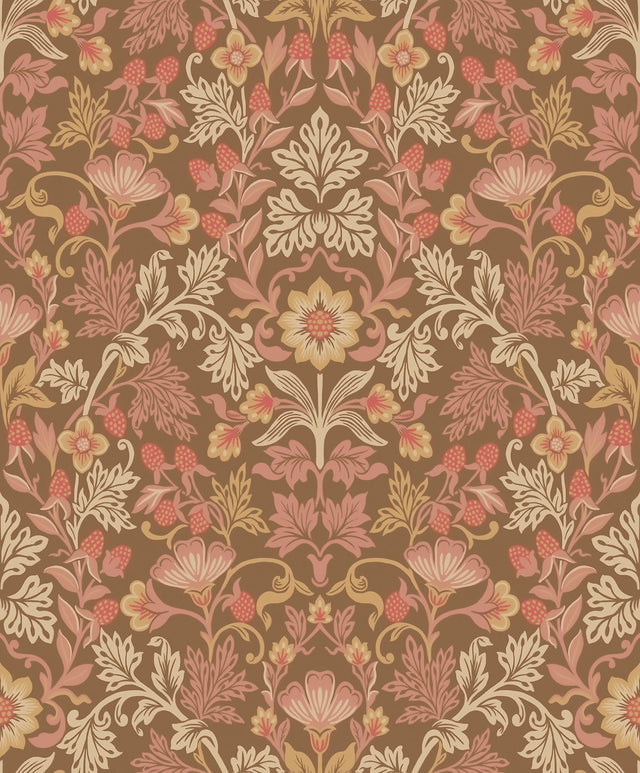 Eijffinger 316005 Lila Pink Strawberry Floral Wallpaper - Bolt is backordered and will ship as soon as it is back in stock.