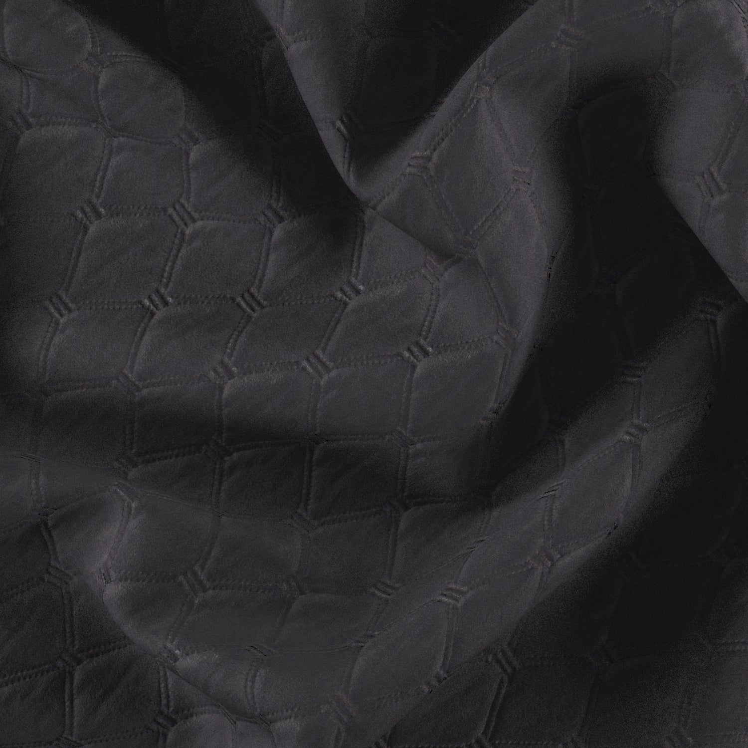 Sophistication and elegance describes this matte velvet fabric with a quilted diamond design and double stitching. In a charcoal grey coloration.