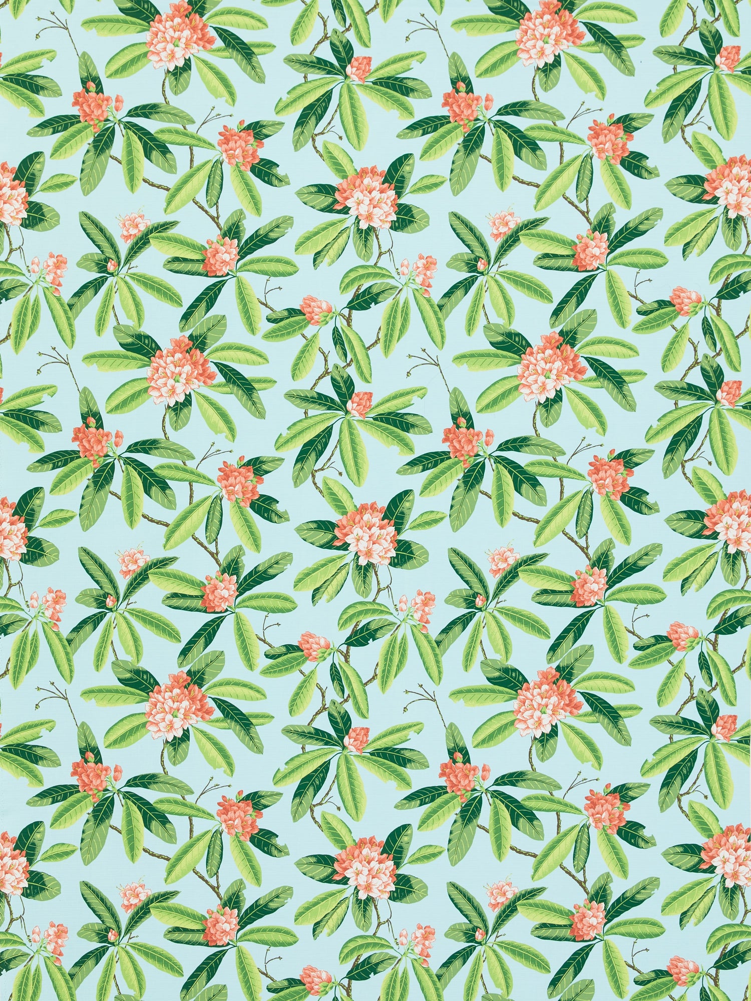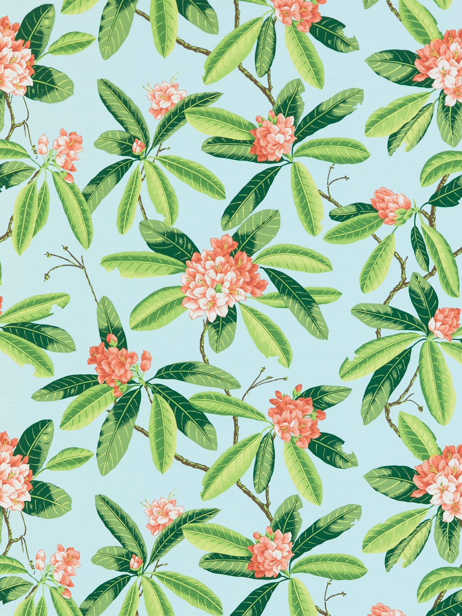 Scalamandre SC 000316454M CORAL ON AQUA RHODODENDRON - OUTDOOR Fabric - Eade's Wallpaper