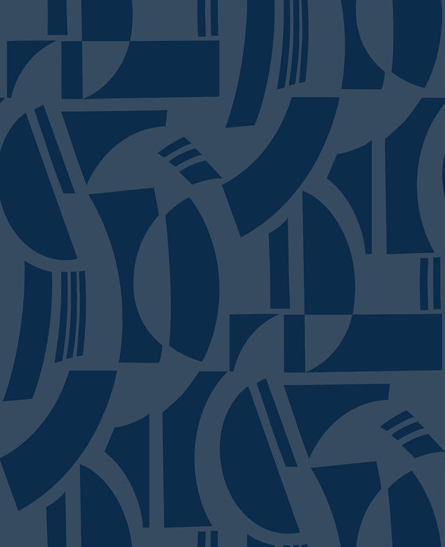 A-Street Prints 4034-87381 Carter Indigo Geometric Flock Wallpaper by Scott Living
