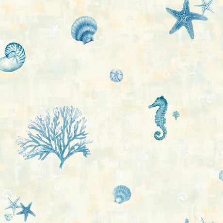 Chesapeake 3113-54531 Boca Raton Blue Seashells Wallpaper