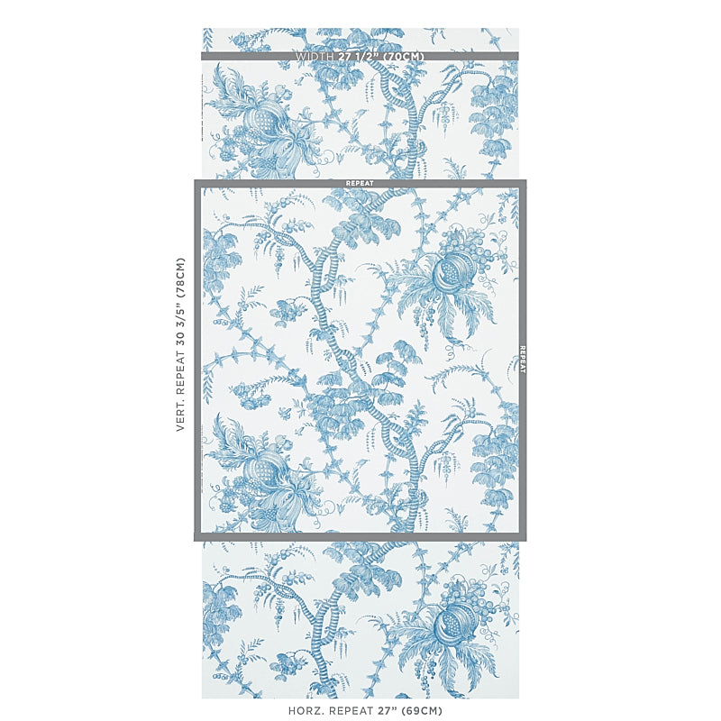 Schumacher 5010620 San Cristobal Toile Peacock Wallpaper