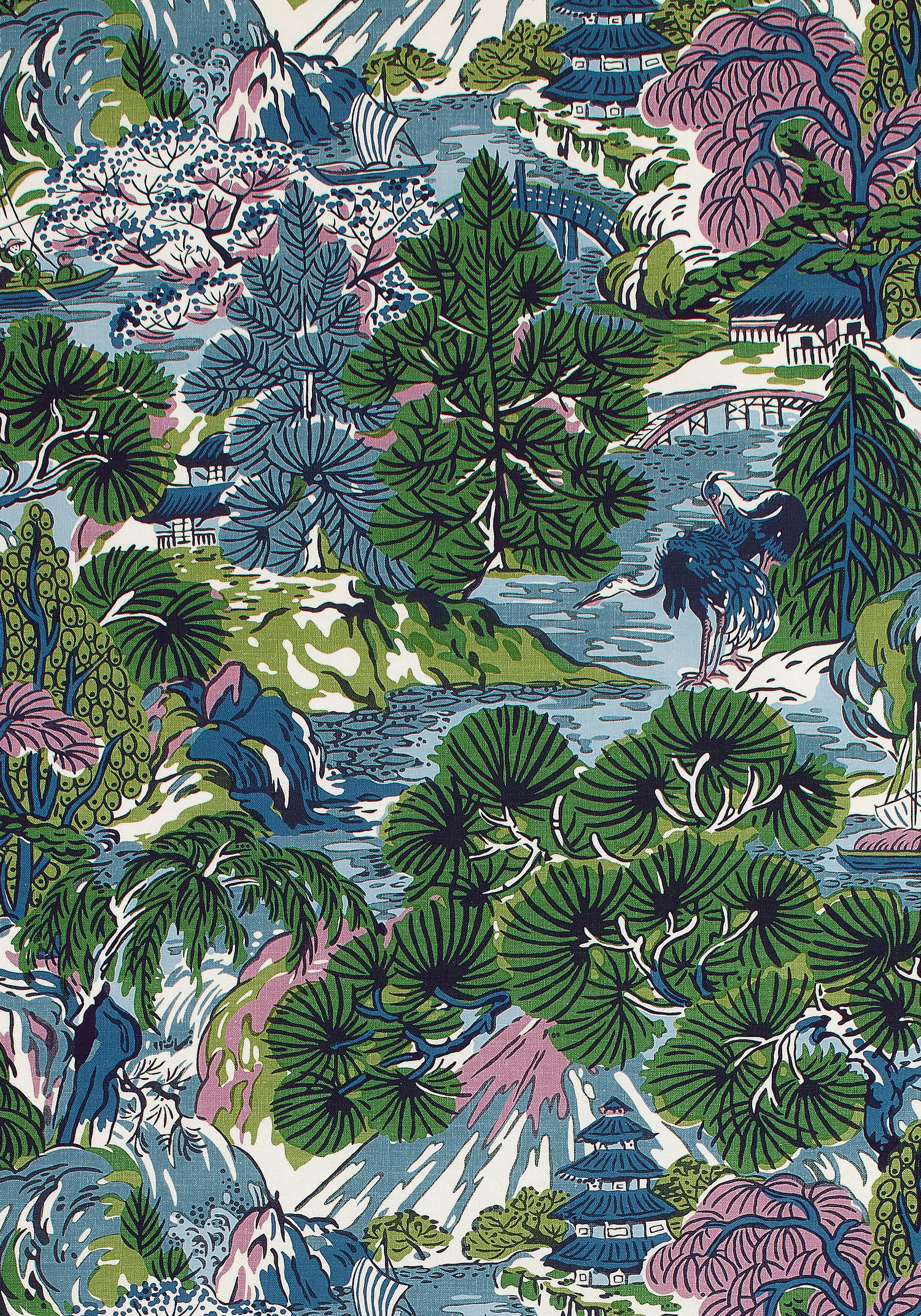 Thibaut F942024 PAGODA TREES Lavender and Blue Fabric - Yard is backordered and will ship as soon as it is back in stock.