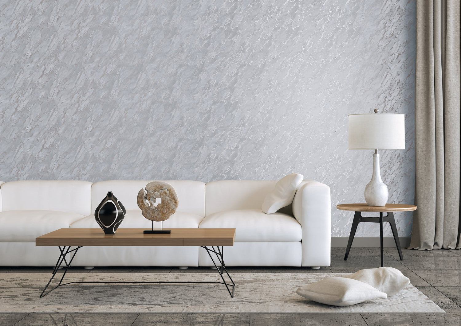 Using faux marble wallpaper is a great way of injecting the sophistication that the real thing brings without high-end price tags or ensuing logistical challenges. Muted colours compliment the natural beauty of the stone to create an overall design that will work well in a variety of spaces. Metallic highlights takes this marble design to the next level.