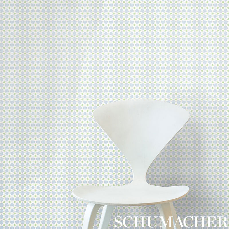 A small-scale star and polka dot pattern, this stylish, two-tone print is a brilliant way to pull together a roomand inject a cheerful vibe. Also a fabric. Designed by Studio Bon.