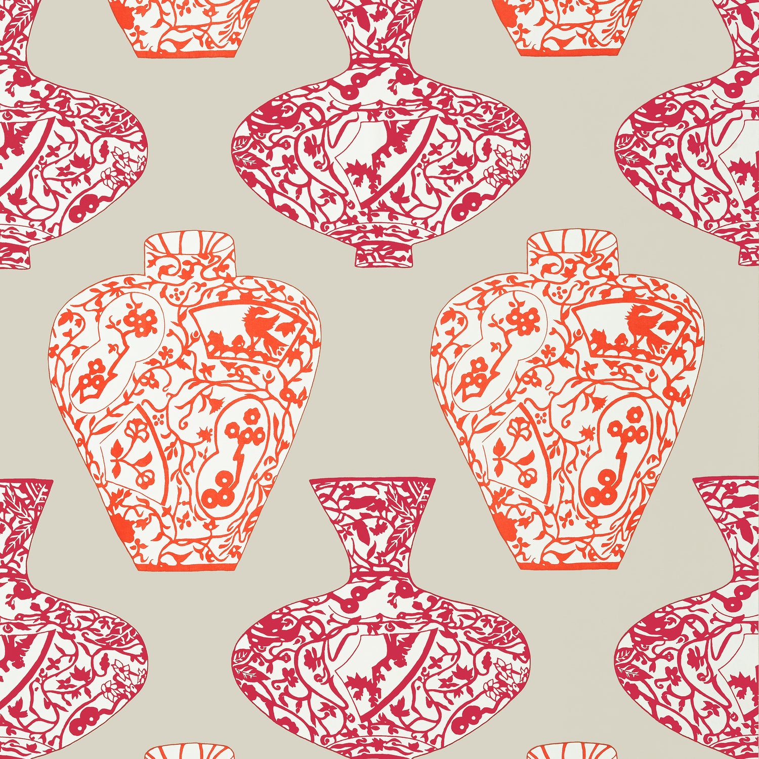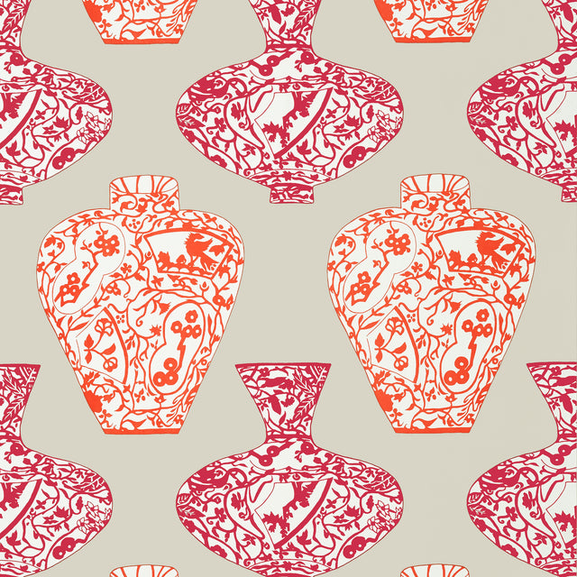 Thibaut T13123 IMARI VASE Orange and Pink Wallpaper - Bolt is backordered and will ship as soon as it is back in stock.