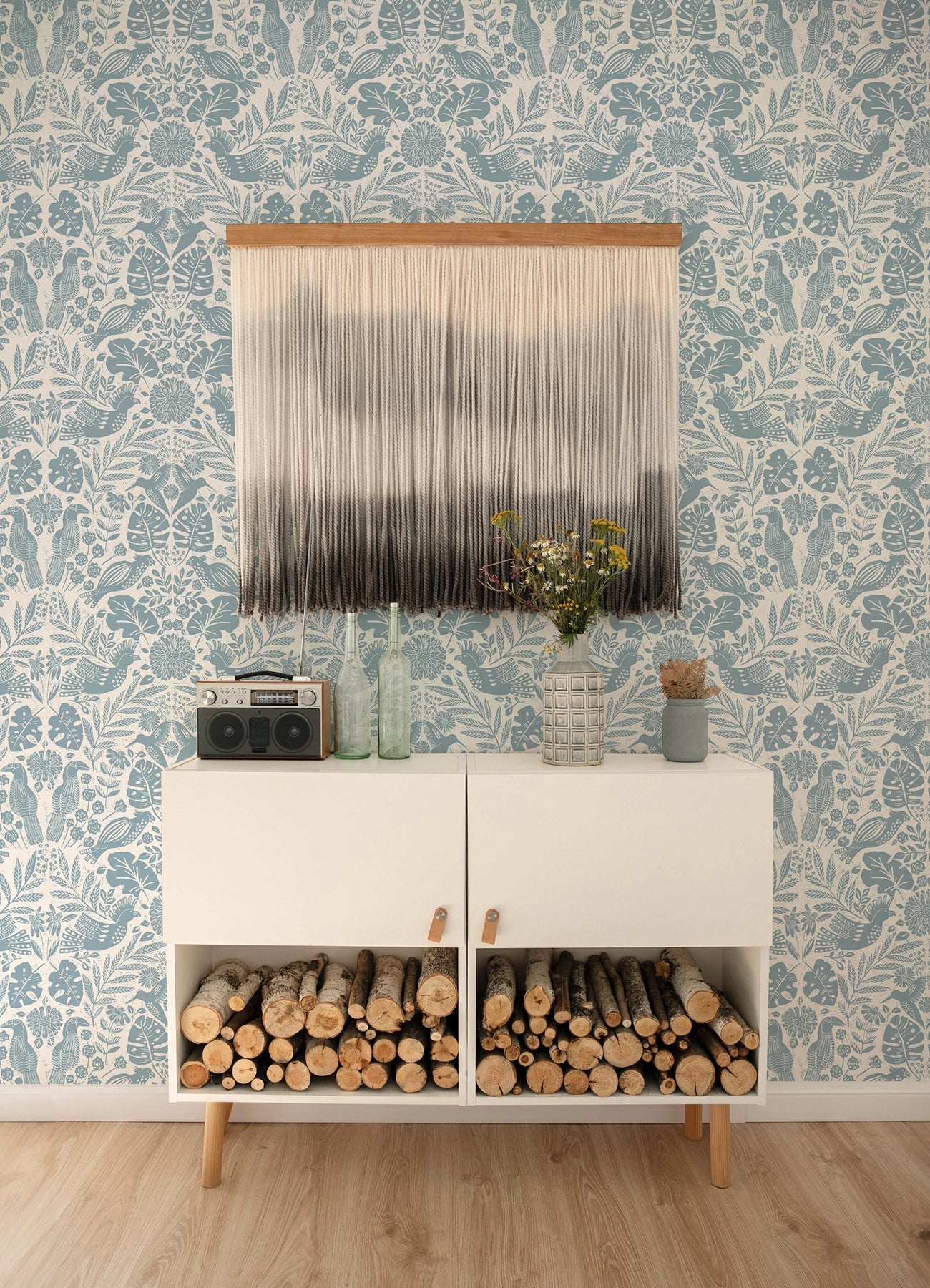 A-Street Prints 4122-27001 Nestle Blue Bird Block Print Wallpaper - Bolt is backordered and will ship as soon as it is back in stock.