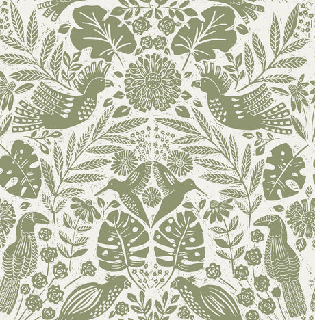 A-Street Prints 4122-27005 Nestle Green Bird Block Print Wallpaper
