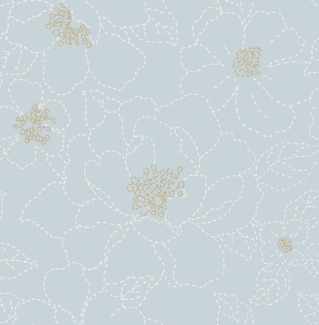 A-Street Prints 4122-27011 Gardena Sky Blue Embroidered Floral Wallpaper