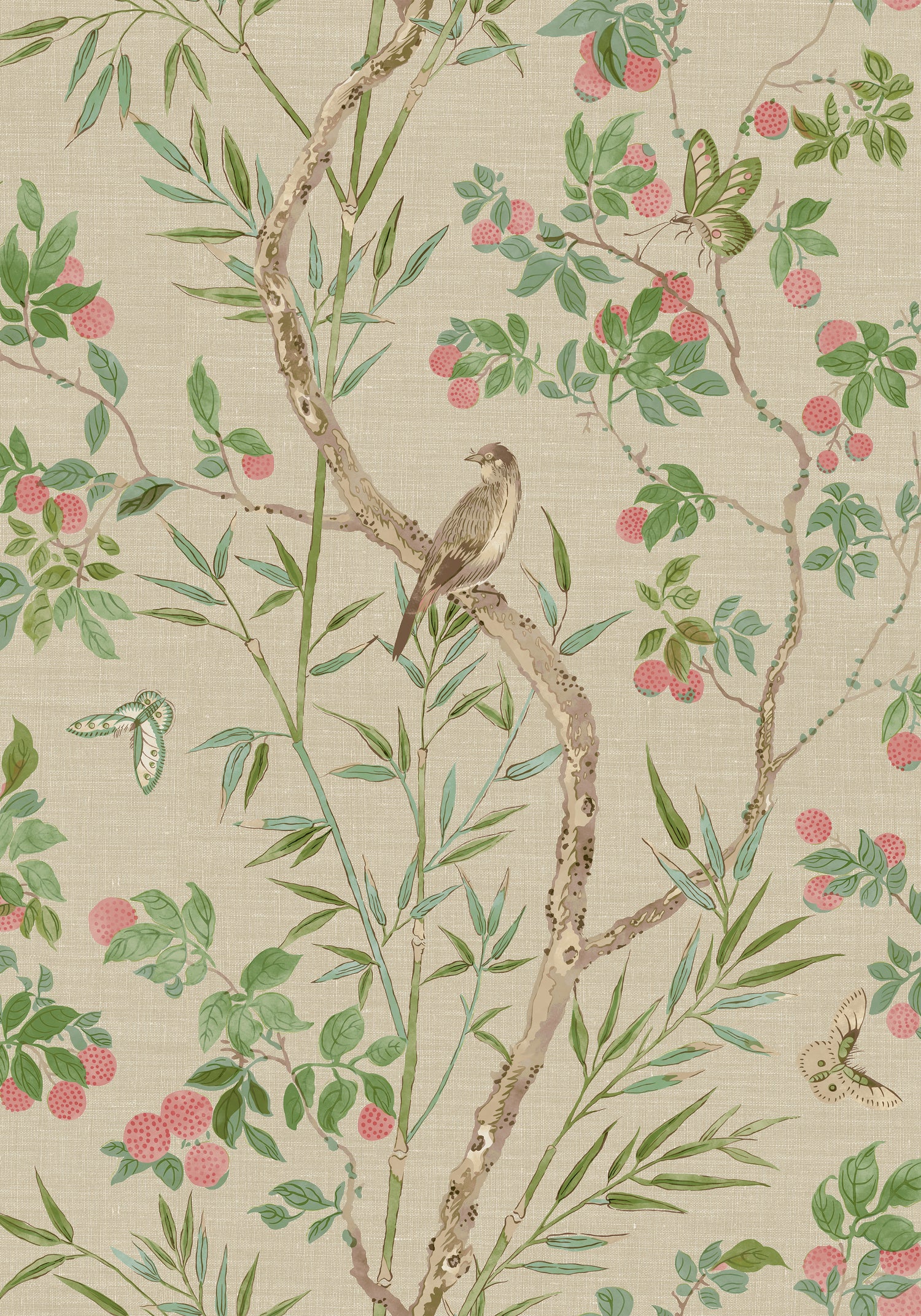 Thibaut T42009 CLAIRE Coral and Green Wallpaper - Bolt is backordered and will ship as soon as it is back in stock.