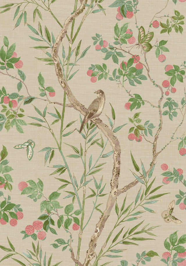 Thibaut T42009 CLAIRE Coral and Green Wallpaper