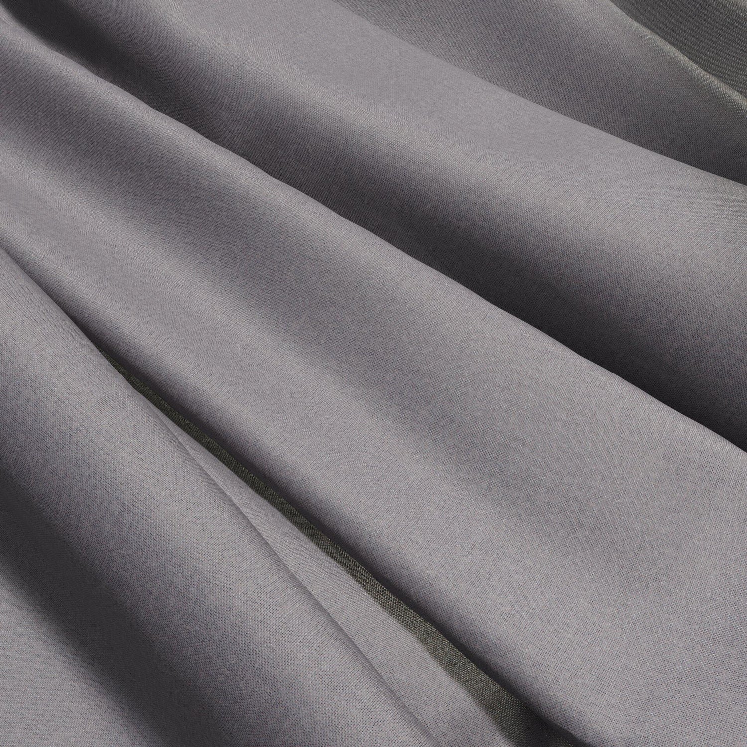 A 100% recycled polyester plain wide width sheer in a charcoal grey with purple undertones.