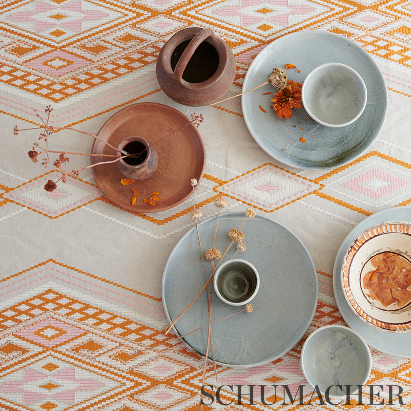 Schumacher 78151 Bayeta Embroidery Pink & Orange Fabric