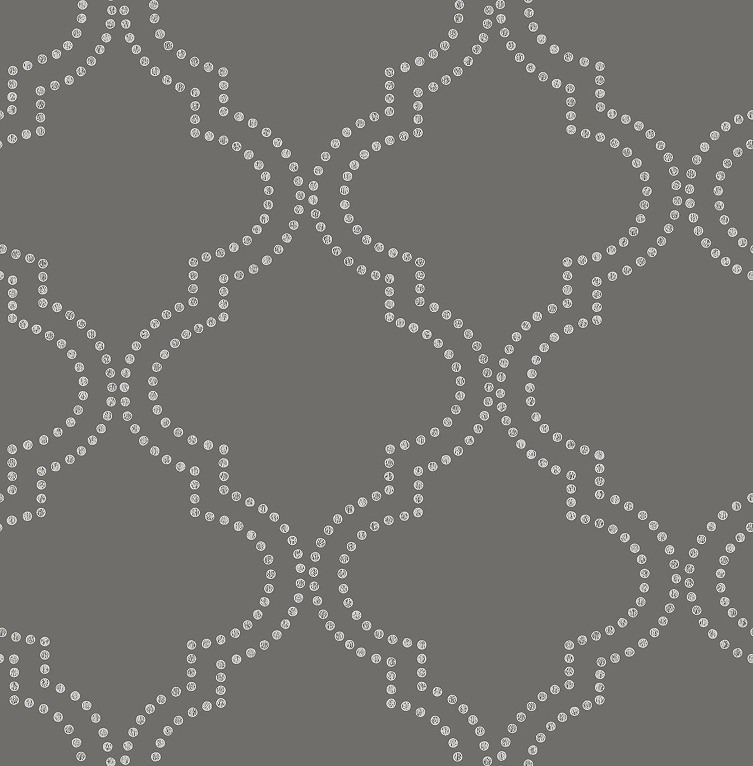 An interesting dotted ogee design, metallic silver dots on a charcoal grey colored ground.
