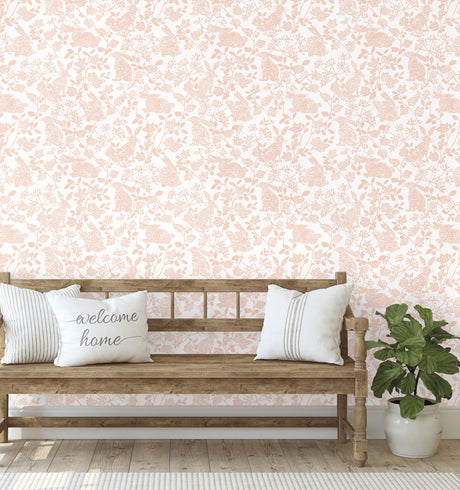 York PSW1343RL Botanical Bunnies Pink Peel & Stick Wallpaper