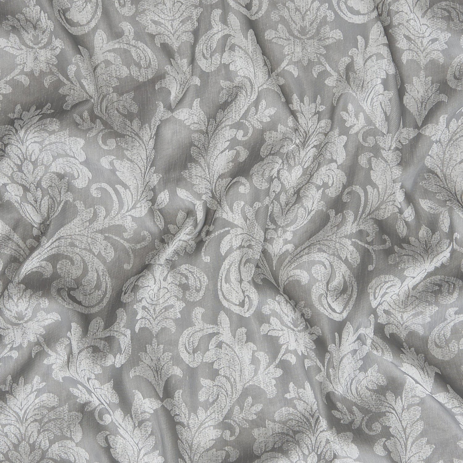 Elegant damask sheer, wide width, great for contract as well as home drapery treatment. Gray on gray coloration.