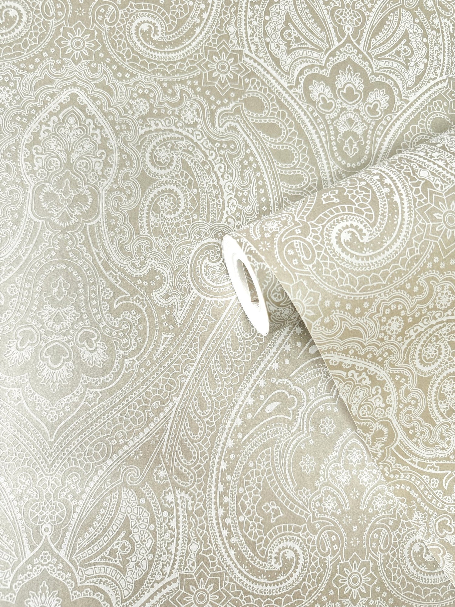 An unusual and richly ornate design with a regal appearance. With some shapes mimicking paisley but with a nod to a traditional damask this design will add splendour to any room in the house. The fine detail and soft sheen makes it a discerning choice for modern and traditional interiors alike.