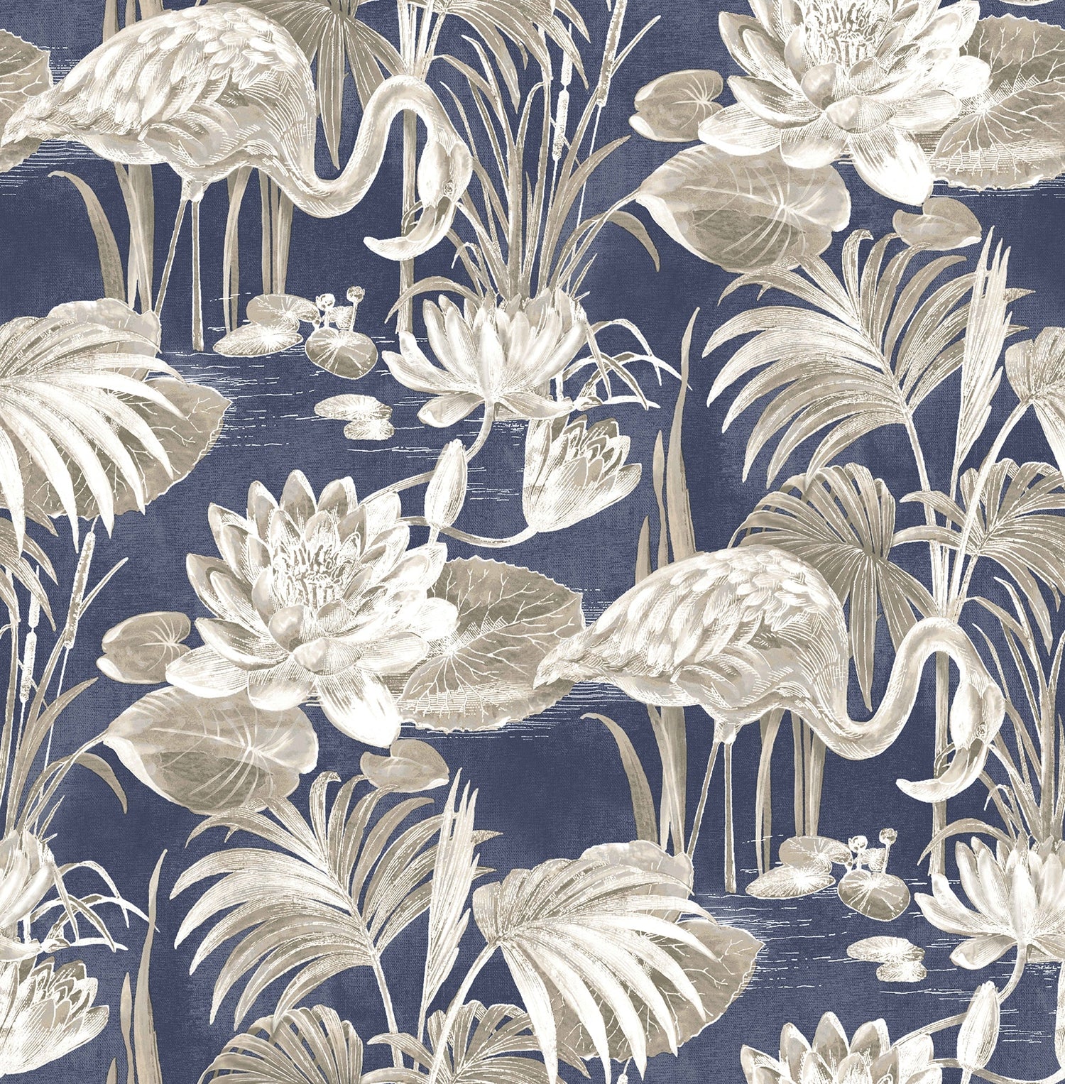 Brewster 2766-24622 Miltonia Navy Flamingo Wallpaper - Bolt is backordered and will ship as soon as it is back in stock.