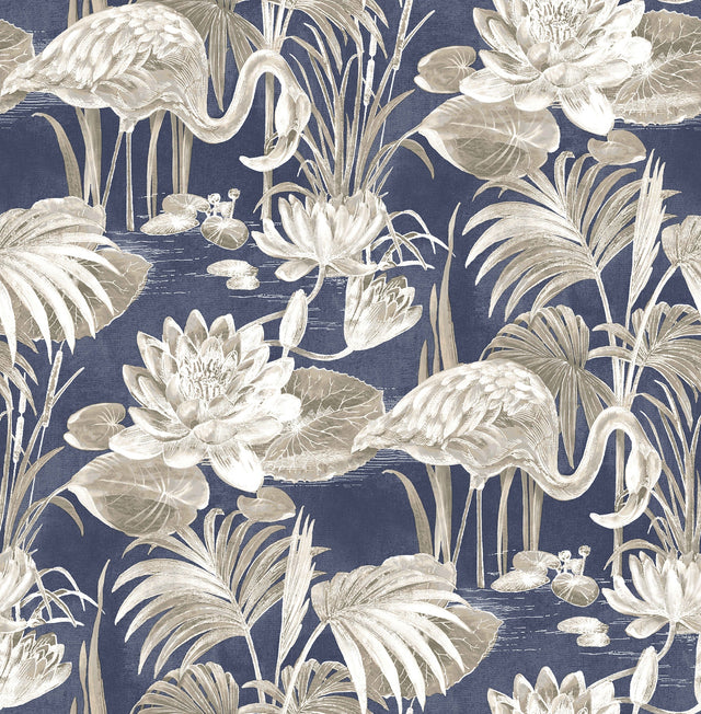 Brewster 2766-24622 Miltonia Navy Flamingo Wallpaper