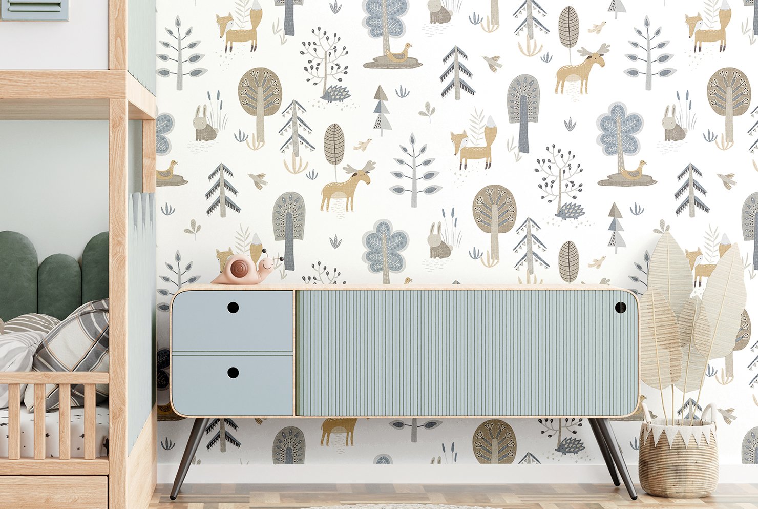 Bring your walls to life with this friendly wallpaper design. Featuring cute, shy country animals such as foxes, deer and hedgehogs, this unique wallpaper is ideal for sparking their imagination, whether they are babies or older. Suitable for using as a sweet nursery wallpaper, this animal inspired design is available in a three muted colourways, and is ideal for creating a modern and warm feel in your child’s bedroom or playroom.