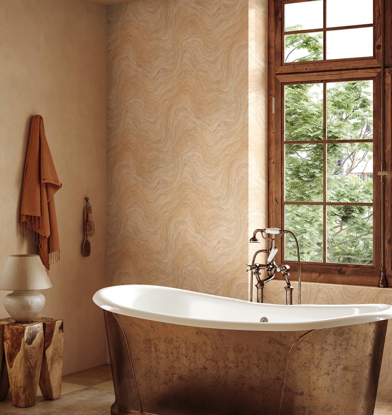 Timeless beige and gold marble effect wallpaper, sandy swirls with hints of grey, truly stunning.
