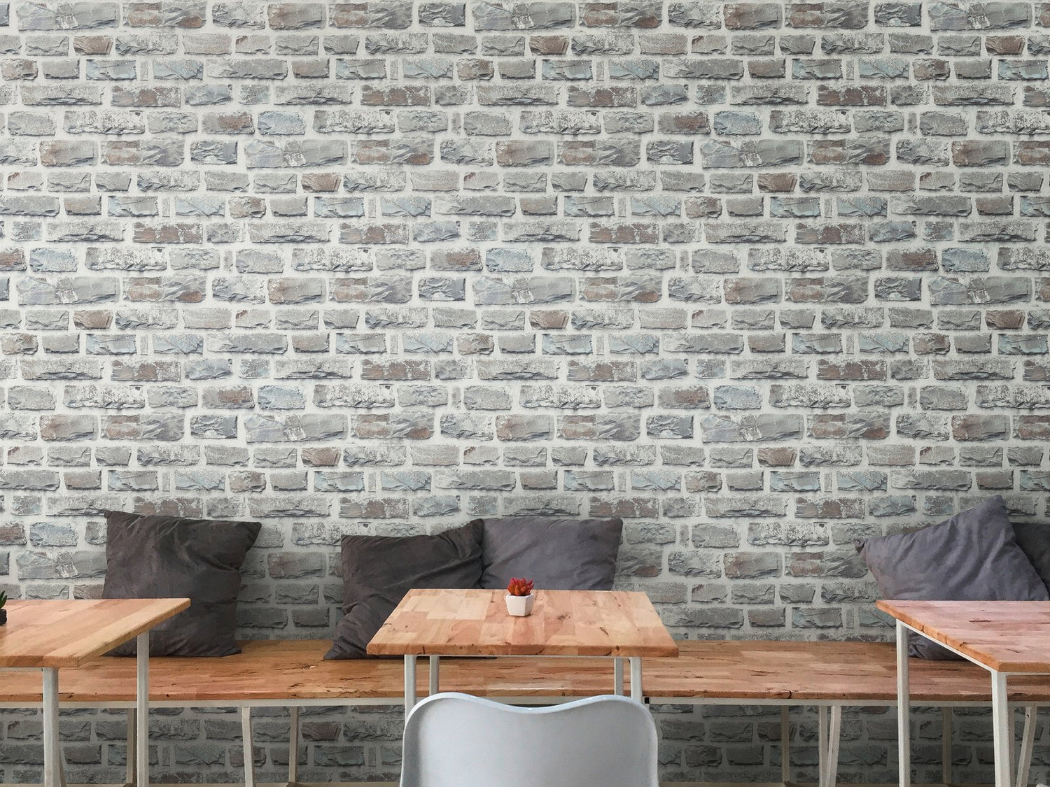 Realistic and modern grey with warm undertones of pink brickwork effect, great for adding a textural dimension to your home.