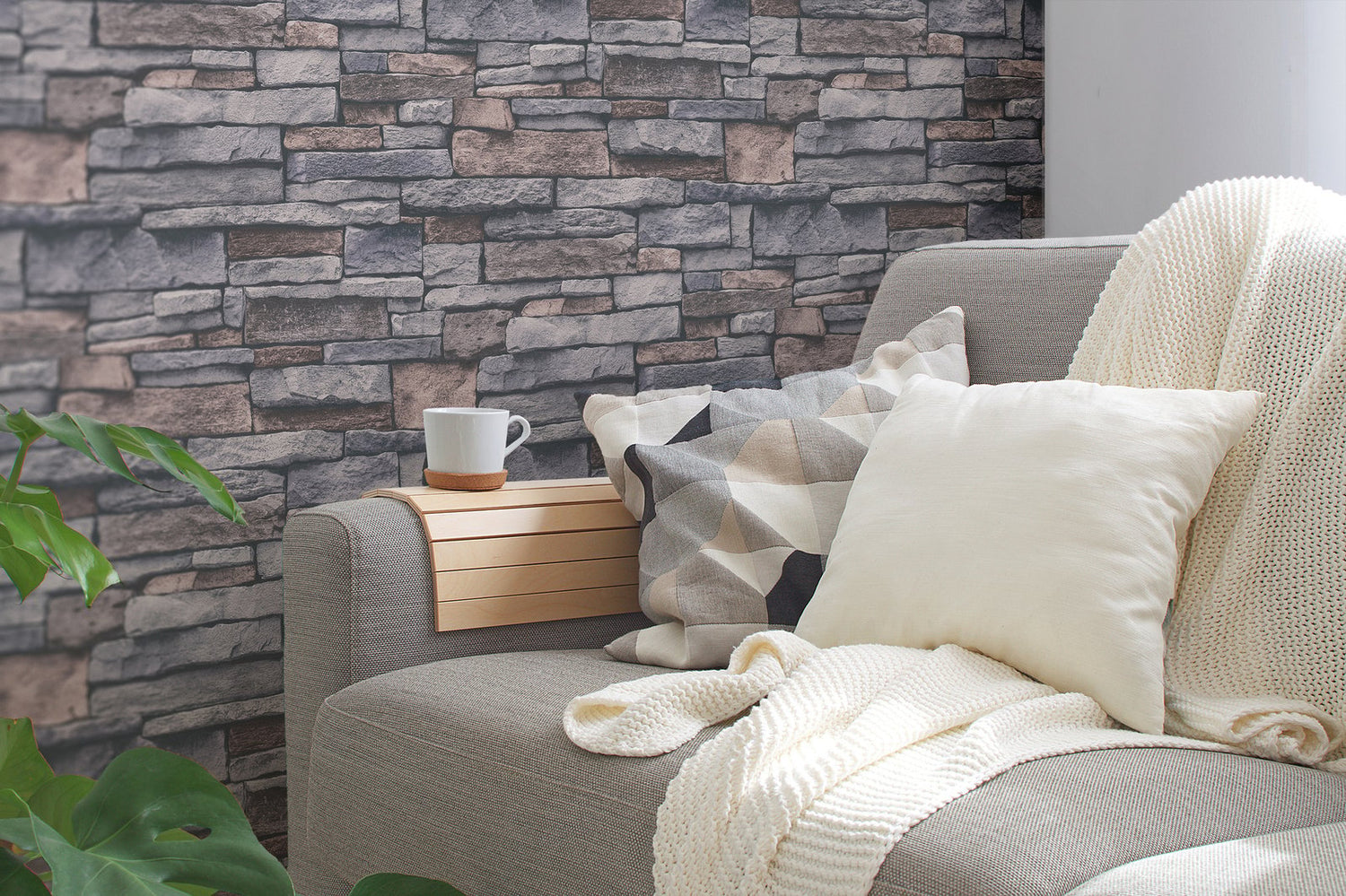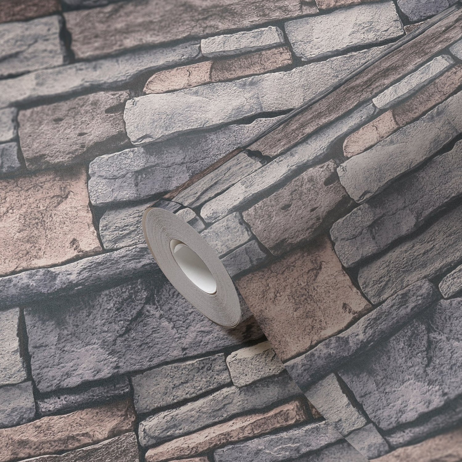 Rustic and natural stone effect brick work of soft greys and pink undertones, great for a feature wall.
