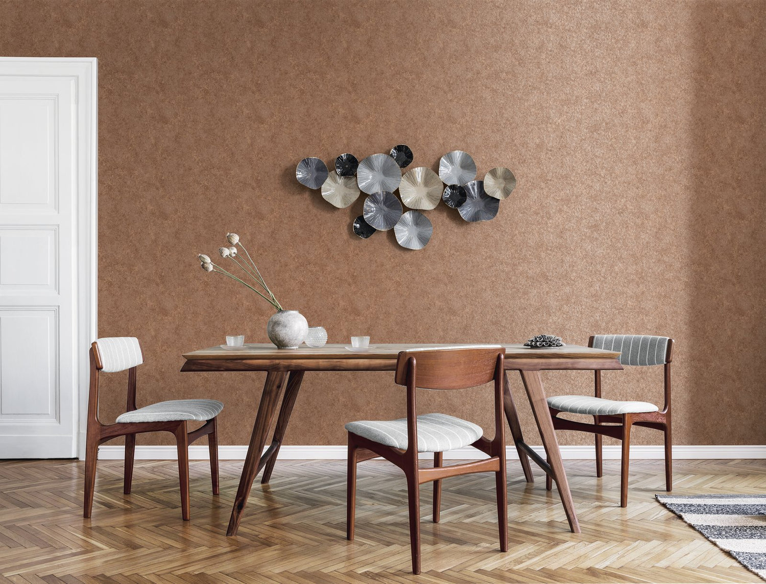 This elegant, smooth wallpaper will add a contemporary industrial feel to your walls. This design is inspired by aged concrete and features a distressed pattern in metallic tones, with fine detail to catch the light, set on smooth background. This high quality, easy to apply wallpaper would look great when used to create a feature wall or to decorate a whole room.