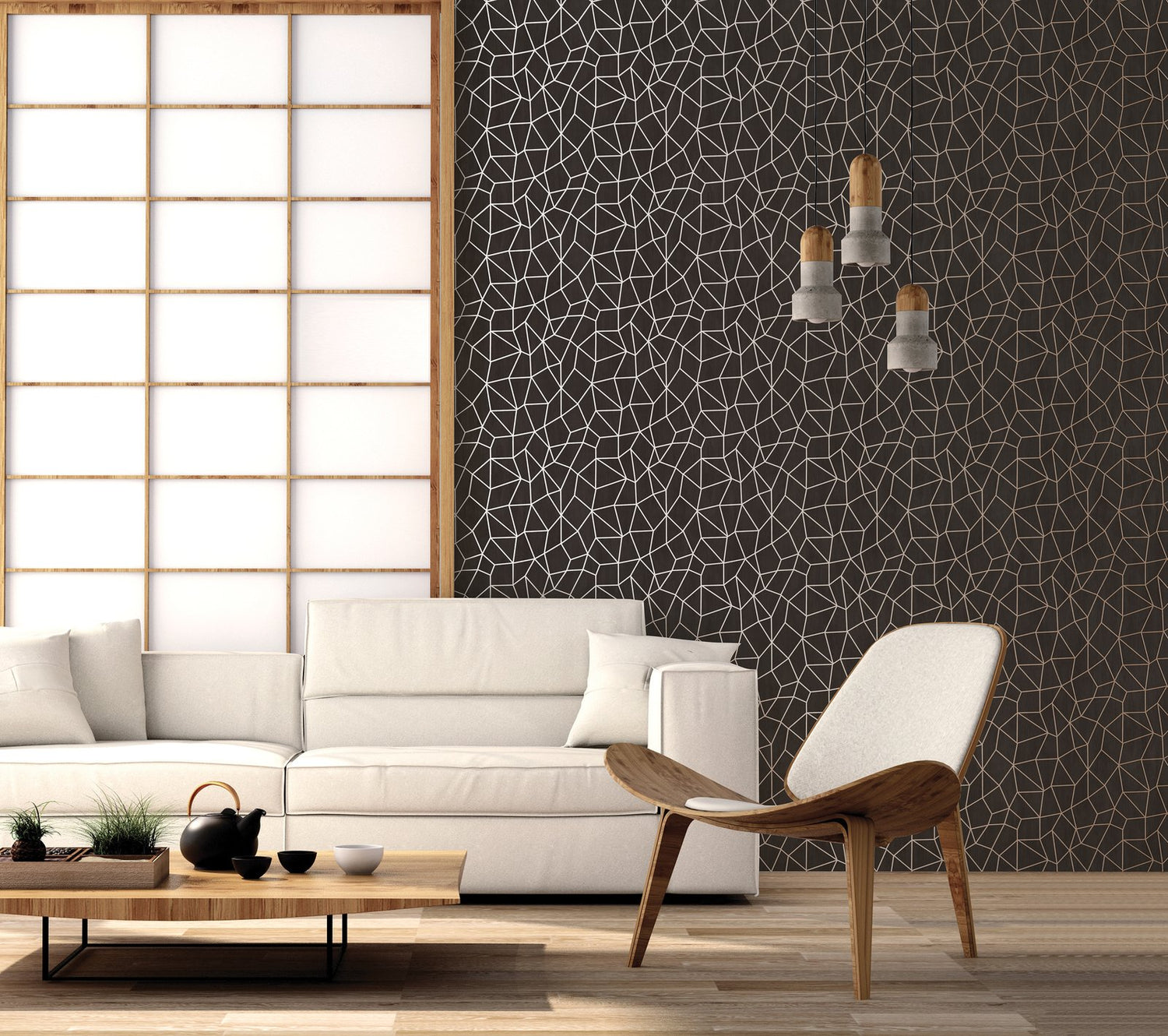 This delightful pattern is sure to lift your spirits. Delicate geometric shapes imitate a web or lacework to create an uplifting motif in shimmery tones that will give a fresh new feel to any space. The result is a design that can work well with either minimal or maximalist styles.