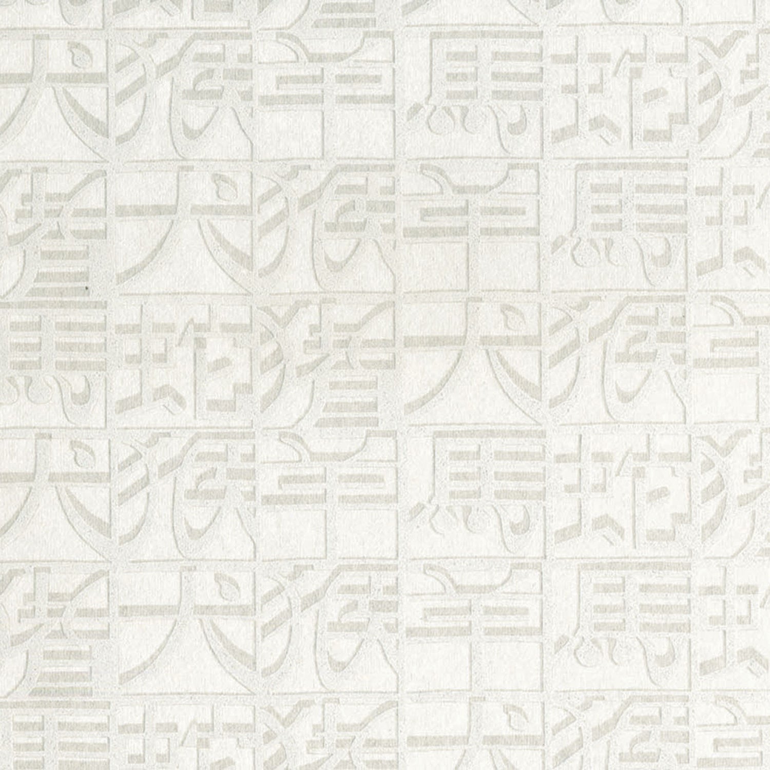 A Missoni Home Asian abstract geo design wallpaper in cream coloration on a metallic ground.