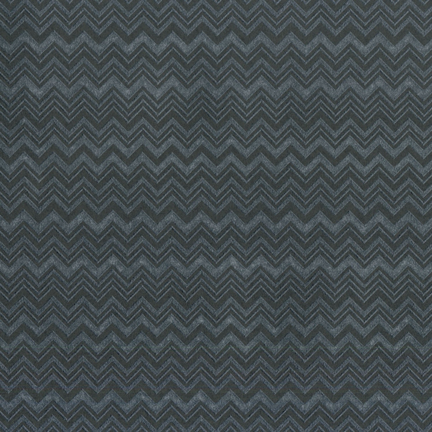 A Missoni Home small chevron design wallpaper with alternating colors of black and metallic silver coloration.