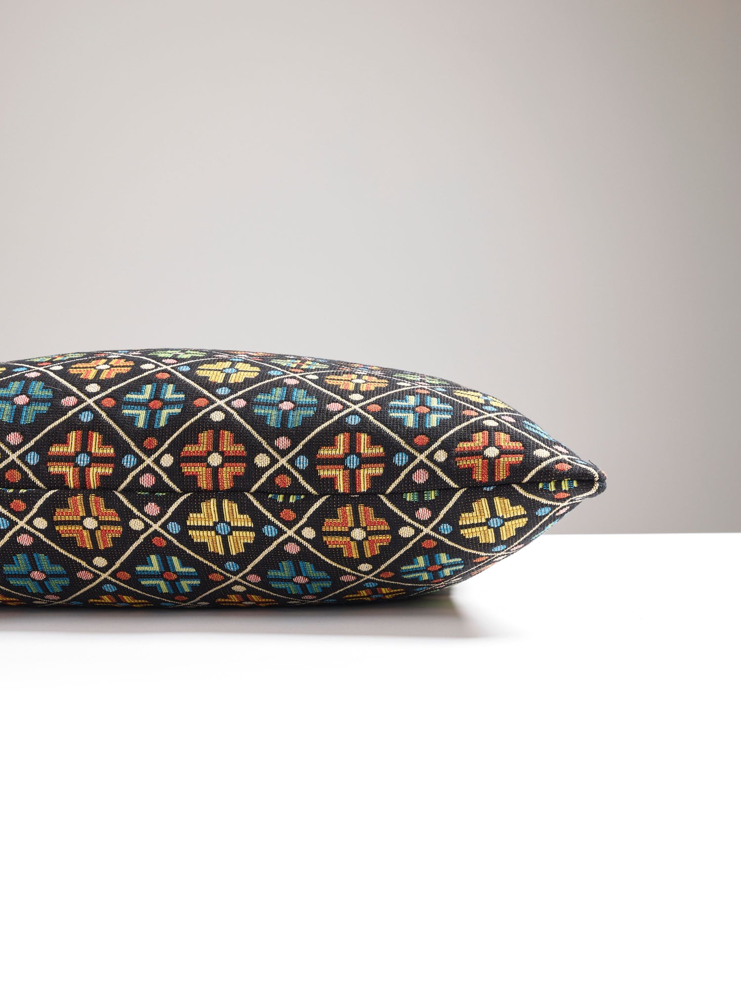 Transform your home with the Scalamandre N1 0002SDDKB411 KIROV PILLOW, a captivating 22 X 22 - MULTI / BLACK decorative pillow. Crafted by Scalamandre, renowned since 1929 for exquisite textiles, this pillow showcases premium 95% COTTON 5% POLYESTER for lasting sophistication. Made in U.S.A., the KIROV PILLOW design in 22 X 22 - MULTI / BLACK brings timeless elegance to your living room, bedroom, or study. Its versatile style pairs beautifully with modern or classic decor, making it a perfect accent for any space. Elevate your interiors with this luxury pillow, exclusively at Eade’s Wallpaper & Fabric, your destination for designer home decor since 1940.