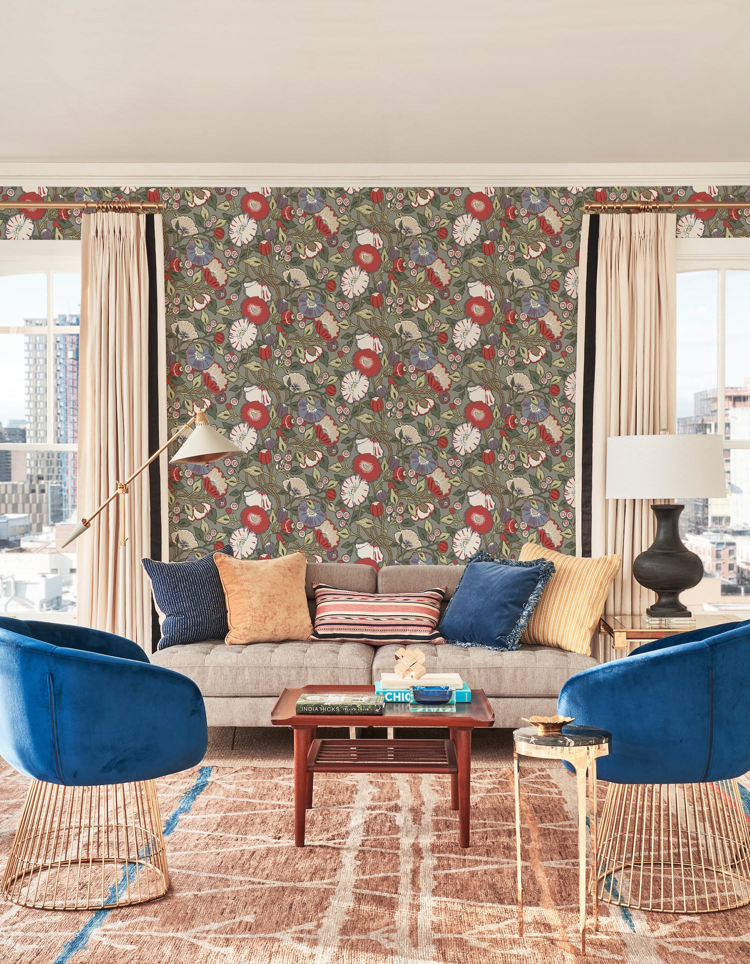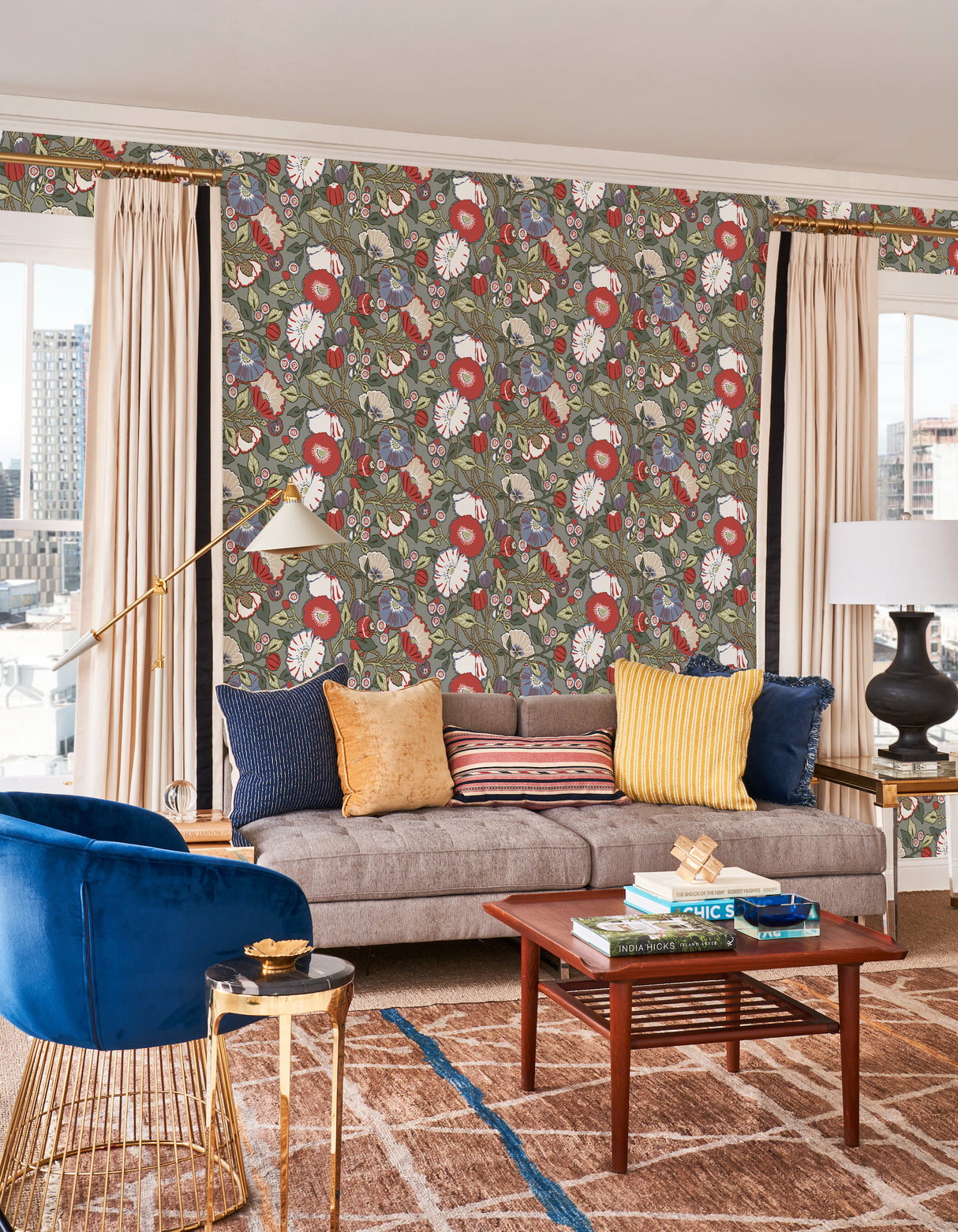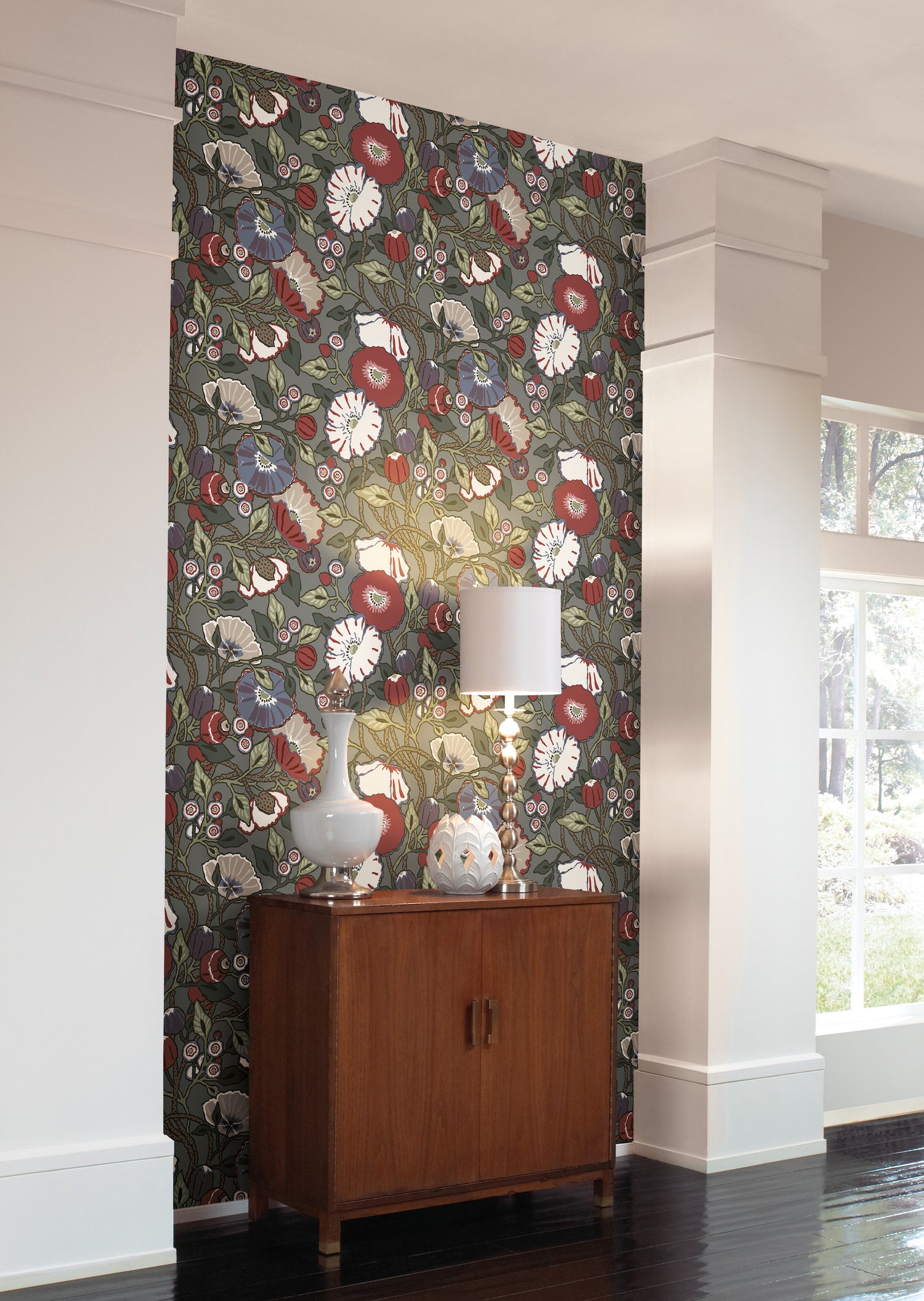 York CY1518 Charcoal Vincent Poppies Wallpaper - Bolt is backordered and will ship as soon as it is back in stock.