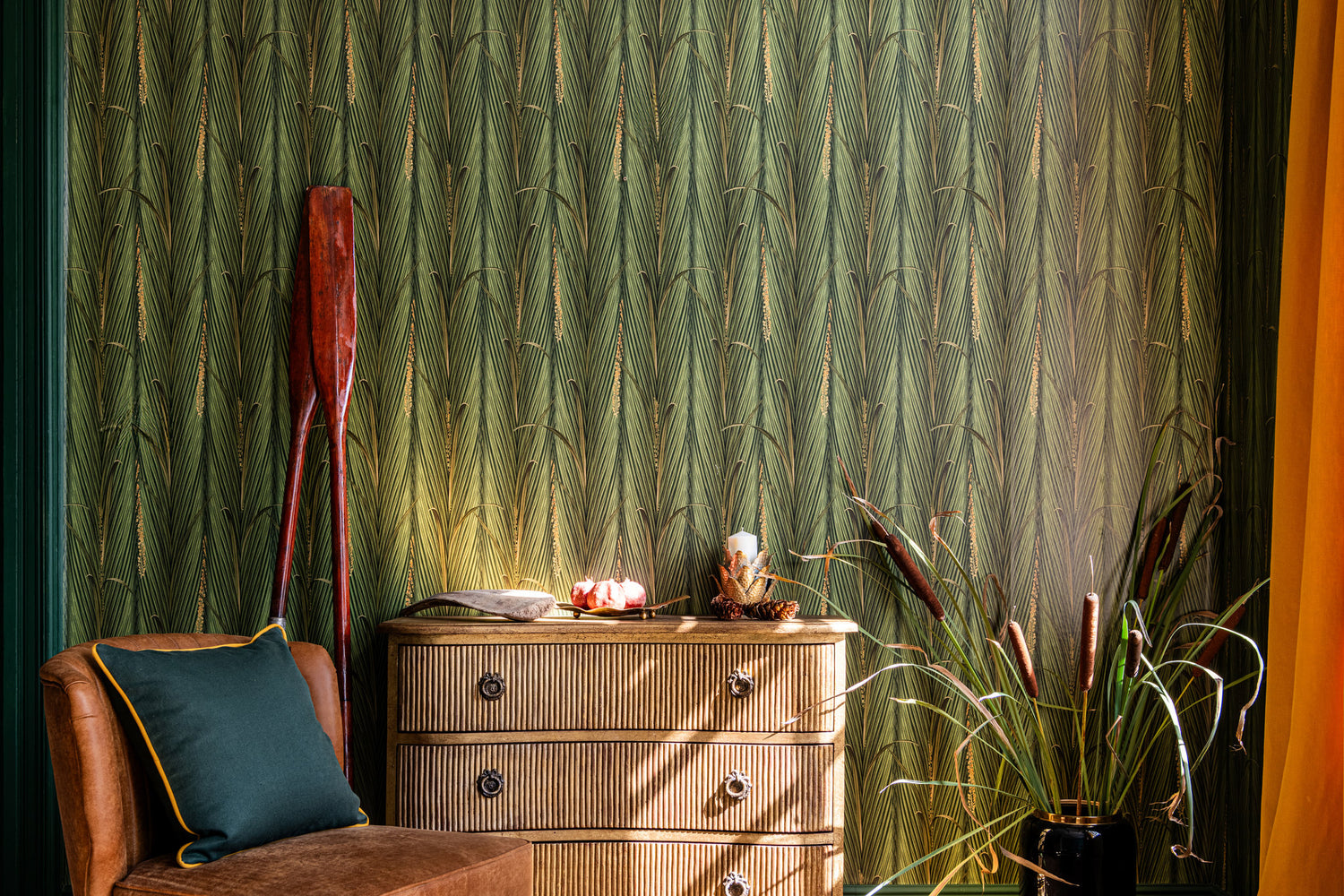 Reflecting the diverse plant life of the Danube Delta, this design celebrates the rich tapestry of the region’s wetlands, lakes, and floodplains. With its intricate depiction of the Delta’s vital foliage, it captures the resilience and natural elegance of this unique ecosystem. Available in five evocative shades — Spring, Absinthe, Sepia, Peridot, and Autumn — this design infuses any space with the tranquil beauty and sophisticated charm of the Delta’s lush landscape, creating a harmonious connection to nature’s enduring grace.
